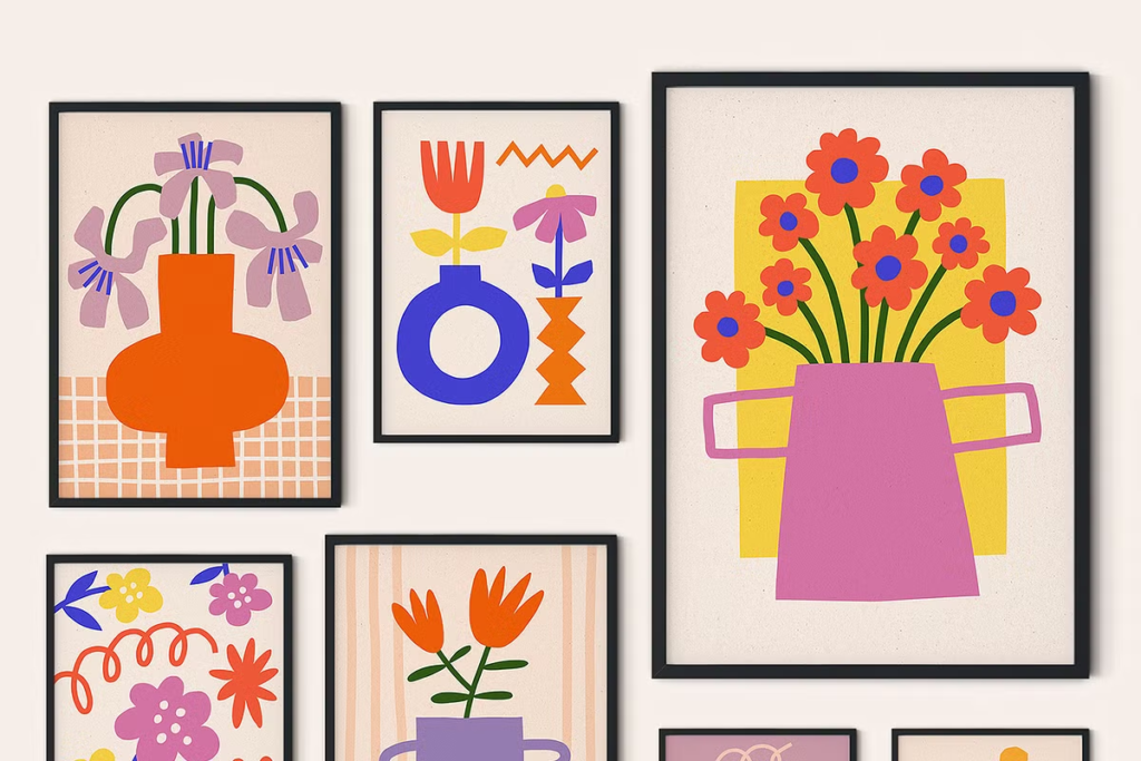 Cutout Flowers Collection includes 48 modern pre-made posters, 320 elements for creating your unique design and paper texture. You can resize and recolour all posters and elements in the editable vector files.