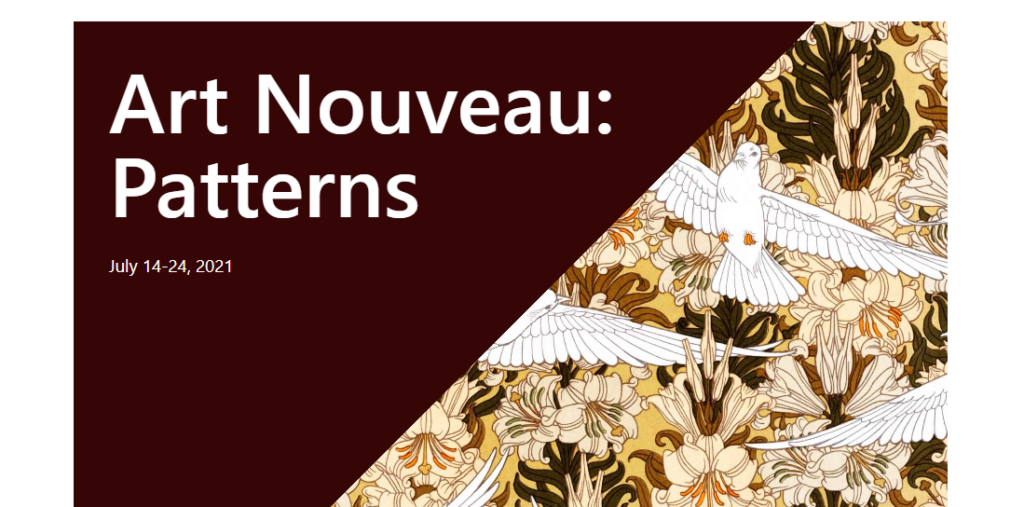 <h2 class="has-white-color has-text-color has-link-color has-huge-font-size" id="art-nouveau-patterns" style="line-height:1"><strong>Art Nouveau:<br>Patterns</strong></h2>