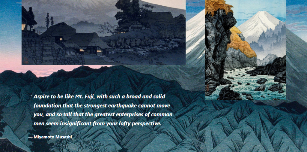 <blockquote class="wp-block-quote is-style-default"><p><em>Aspire to be like Mt. Fuji, with such a broad and solid foundation that the strongest earthquake cannot move you, and so tall that the greatest enterprises of common men seem insignificant from your lofty perspective.</em></p><cite><strong>— Miyamoto Musashi</strong></cite></blockquote>