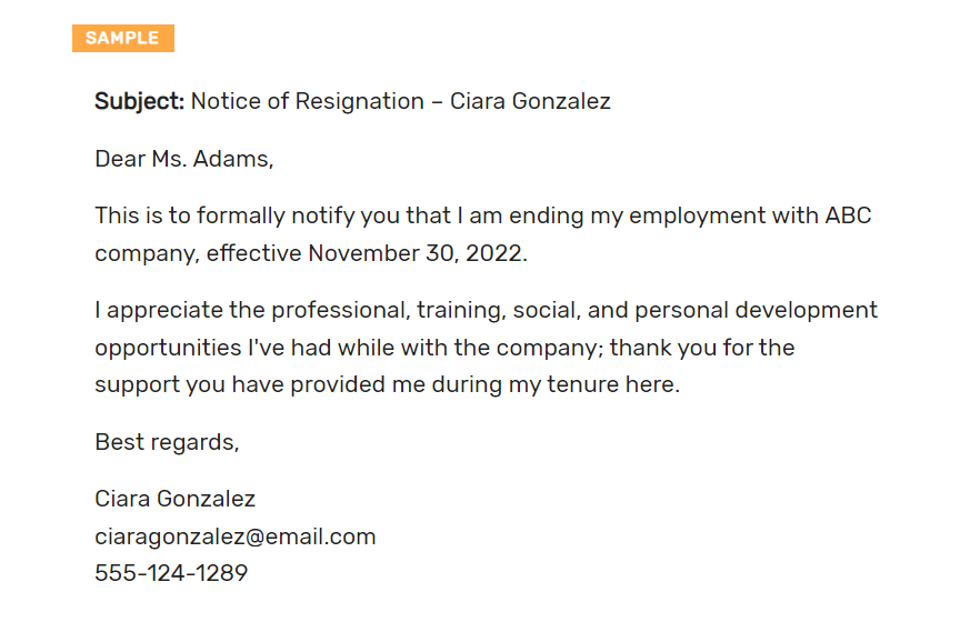 In the list below, you’ll also find further resignation letter examples for casual jobs:
