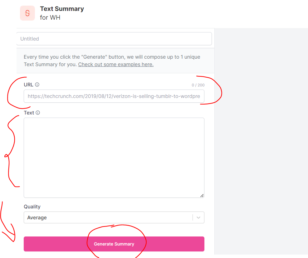 You may either put your long text into the text area or import the material straight through its link URL without copying and pasting. The program will then provide you with a condensed summary based on the textual material provided.
