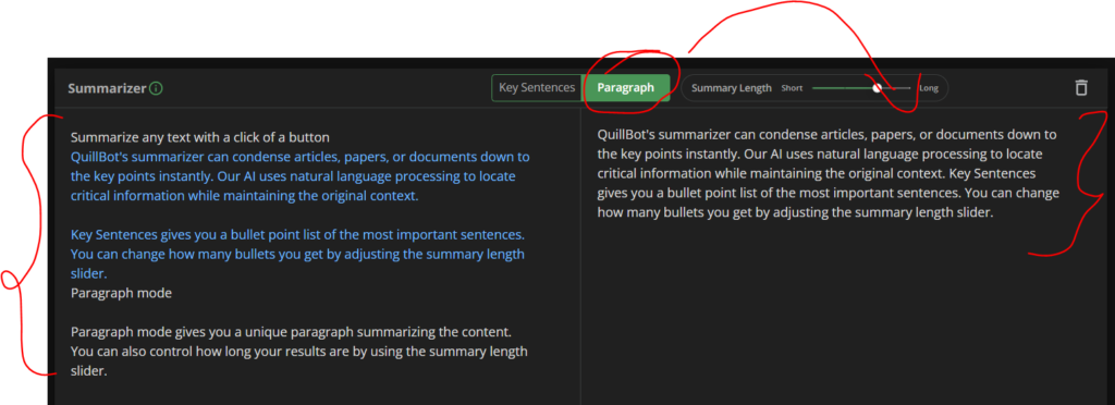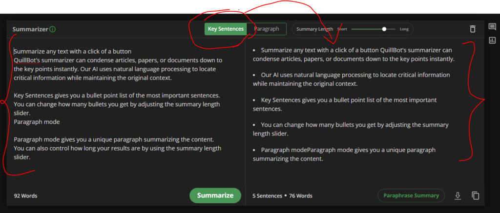 With the Quillbot Summarizer tool, you can make your sentences shortened for easier reading, and that includes: