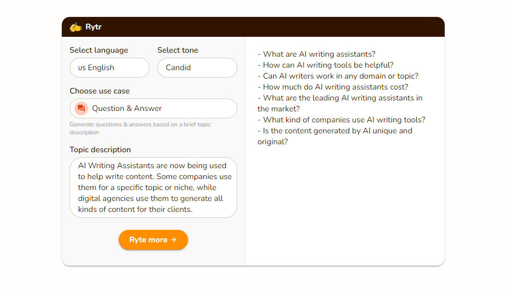 2. Rytr Question Generator