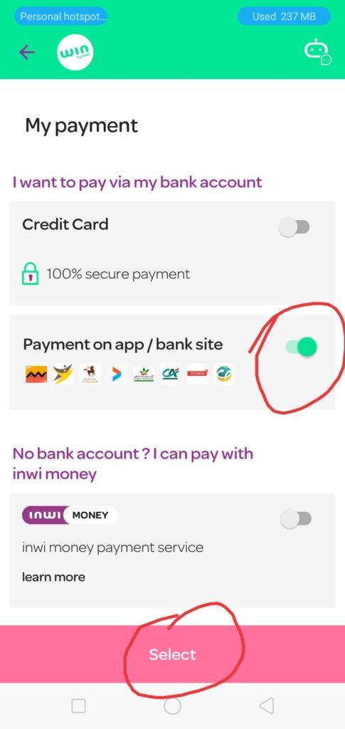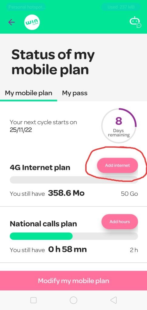 Voici comment j’ajoute une connexion Internet à mon abonnement/forfait Win by Inwi une fois qu’il est épuisé, en suivant les étapes illustrées en images.